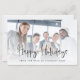 Budget Business Logo Photo Happy Holidays Flat card. A budget price 5.5 x 8.5" flat card for your festive greetings on a shiny SEMI GLOSS 110 lb card stock (similar to the thickness of a postcard) PLEASE NOTE: The envelope supplied with this card is larger than the card at 6.75" x 9". Simply replace the sample photo with a festive picture of your employees for the front, which is behind a gradient opacity layer so the text stands out well. You change text colours if you better to suit your photo via the customise further option. On the back, replace the sample image with your logo. Happy Holidays is in a set informal script and easily personalise the rest of the typography on both sides or remove any not required.