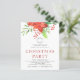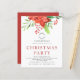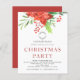 Budget Business Poinsettia Logo Christmas Party Invitation. A value for money smaller 4.5 x 5.6 inch alternative on a semi gloss 110gsm card, which is of similar thickness to a postcard. For your annual corporation holiday party for your employees or for customers and clients festive events. This design with your logo, has beautiful red winter florals and greenery at the top.