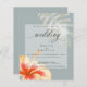 Affordable Rustic Tropical Watercolor Hibiscus and Foliage Wedding Invitation | NEW! Affordable Lightweight Wedding Invitations - a single bright coral and yellow tropical hibiscus flower and one split leaf philodendron leaf adorn opposite diagonal corners both, edged in sparkling gold all set on a dusty sage green background with a sheer white overlay for the text to be easily read and yet allow the design to show through - beautiful handwritten calligraphy - easy to customise template - original design by ©WhimsicalArtwork™ for theBarefootBride ™. This is part of our Watercolor Tropical Hibiscus wedding collection as well as Baby Shower, Birthday and Christening Invitations. For question or assistance please contact designer indy.designer@yahoo.com.