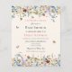 This is a budget friendly bohemian and sweet baby shower invitation. The design features beautiful butterflies and bees around fields of summery delicate wildflower florals in pretty shades of blue, terracotta, pink, rust, purple and yellow.