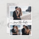 Chic Sophisticated Calligraphy Modern 3 photo Collage Wedding Save The Date Postcard, where contemporary style harmoniously meets timeless charm. Envelop yourself in the enchanting allure of a stunning 3-grid photo collage intertwined with elegant hand-lettered calligraphy. Tailored perfectly for modern weddings, the reverse side offers seamless customisation, showcasing a full photo adorned with a delicate translucent overlay for the effortless addition of your wedding specifics. Effortlessly personalise this card with your beloved photos and wedding details, guaranteeing a one-of-a-kind and memorable announcement for your special celebration.