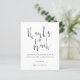 Calligraphy Any Colour Photo Wedding Thanks So Much. A budget price SMALLER 4.5” x 5.6” alternative. Available in a SEMI-GLOSS 110 lb CARD STOCK which is the default option (thicker for invitations), OR a SATIN FINISH 80 lb THINNER PAPER STOCK (ideal for enclosures). Envelopes are an optional extra and are slightly larger than the card size. A modern typography design with a set stylish handwriting style script for Thank You. On the back replace the sample picture with your own favourite from your day as a keepsake for your guests. Easily personalise the rest of the text with your message and names.
