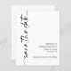 Budget Calligraphy Graduation Save the Date. A budget priced smaller 4.5 x 5.6” alternative on 110gsm semi gloss similar in thickness to a postcard. Stylish set calligraphy is rotated to the left hand side, with all the details stylishly to the right with lots of white space for a contemporary feel. Easily personalise with your details. And change the colour of text and background if you wish via the edit further option.