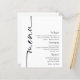 PLEASE NOTE There are two paper options to choose from for this size (4.5 x 5.6”) in the Budget range. For this product, I would highly recommend the semi-gloss which is a 110 gsm card stock, similar in thickness to a postcard. The Satin option is a much thinner paper 80gsm. The default is set to semi-gloss. Budget Calligraphy Minimalist Wedding Menu. This modern design has Menu in elegant set script running up the left hand side and the rest of the text is aligned to the right which you can easily personalise as well as your names and wedding date on the back. Text and background colours on either side can be changed to any of your choice via the customise further option.