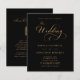 Budget Elegant Calligraphy Script QR Code Double Sided Black and Gold Wedding Invitation... Our elegant affordable gold on black wedding invitation features swirly calligraphy script combined with beautiful serif typography to set a romantic tone for your upcoming nuptials. The back of the invitation also displays your wedding website QR code as well as the website's URL itself allowing your invitees to easily RSVP online and view all of the details typically sent in a wedding packet. This double sided style wedding invitation was designed to be both elegant and budget conscious... as well as time-saving. The example QR code graphic and all example text (aside from the graphic calligraphy elements) can be easily revised with your own information on the personalisation template. ***Please note: our budget invitations do not automatically include envelopes. You have the option of ordering them with your invites or via your favourite office supplies vendor.