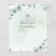 Budget priced Elegant Christian, Catholic faith wedding invitation with text template fields both sides for you to include wedding ceremony, reception, rsvp, gift registry brief order of the day program. Greenery botanical Eucalyptus leaves foliage theme with gold lettering and cross. This is my lowest priced invitation on flyer paper for a thicker budget option select Semi-Gloss Sheets from the attached collection or 5x7 Flat Card for premium.