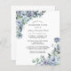 Elegant dusty blue flowers create a beautiful floral frame for your funeral invitation. The deceased person's name is written in a traditional script text. All of the text can be easily edited to create a personal remembrance.