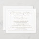 A value for money BUDGET alternative on a smaller size 4.5 x 5.6” semi-gloss 110lbs weight, which is of similar thickness to a postcard (however is not suitable to use as a postcard.). PLEASE NOTE there is ONE invite per sheet. Budget Budget Celebration Of Life Border Champagne Gold Script Luncheon Invitation. A stylish set calligraphy style script for Celebration of Life and In Loving Memory and the rest of the text you can easily personalise. A single line border is around the words. In champagne gold on white or can be changed to any colours of your choice via the customise further option.