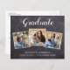 Invite your friends and family to your graduation with these rustic chalkboard slate, fun and modern photo collage graduation invitations cards. These budget graduation invitation postcards need to be mailed as oversized postcards so may incur standard postage fees but they don't need an envelope or a return address label. Customise with 3 of your favourite senior or college photos, and personalise with graduating year, name, high school or college and graduation party details. These unique trendy and stylish graduation cards will make a lasting impression with family, friends, and your fellow classmates! COPYRIGHT © 2020 Judy Burrows, Black Dog Art - All Rights Reserved. Budget Chalkboard 3 Photo Graduation Invitation Postcard