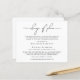 Budget option for a change of plans wedding announcement if circumstances require that you downsize your wedding, postpone your wedding, change venue, change the date, etc. This modern and minimal, yet elegant, black and white announcement features "Change of Plans" written in a trendy stylish script. Easily personalise your wedding change of plans announcement message in more detail.