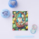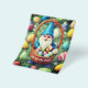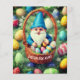 Charming Gnome & Basket Easter Egg Hunt Flyer. A happy gnome in blue clothing, looking over a basket of colourful Easter eggs. Personalise this template with text on the front and back of the card. Make it for breakfast or dinner. Edit it to make more changes.