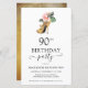 Modern Elegant Gold Tropical Floral Gold High Heels 90th Birthday Party Invitation featuring our glamourous glitzy watercolor gold high heel surrounded by pink and green tropical flowers. The background is a luxurious watercolor gold wash. Easy to customise with your information for a simply elegant birthday party invitation. **Our BUDGET paper is smaller and more delicate, but still beautiful!** For a comparison of paper types, please watch our video here: https://youtu.be/G0F9Am5HPD4 If you need assistance or matching items, please contact us at cedarandstring@gmail.com.