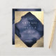 Stylish wedding invitations featuring a diamond-shaped navy watercolor overlay with champagne gold foil corners. Your details are displayed with classy, elegant typography combining script and serif fonts. As part of the budget selection here on Zazzle, these invitations come in limited sizes and paper stocks. If you need a different size or paper stock, this design can be transferred to a standard 5x7 format using the design transfer tool for more options.