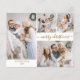 Budget, Minimalist, Elegant Calligraphy Gold Script 5 Photo Collage "Merry Christmas" Script Holiday Thin Card in gold white. This festive, simple, whimsical five (5) photo holiday card template (on front 4 photo and back 1 photo) features a pretty grid photo collage and says „Merry Christmas”! The „Merry Christmas” greeting text written in a beautiful hand lettered swirly swash-tail font type. On the reverse side greeting text message template and one horizontal photo template. Pretty greeting card for your family and friends in Christmas Holiday season. Cheap affordable Holiday cards.
