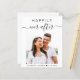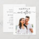 Budget-friendly wedding invitation featuring your photo and "Happily Ever After" in a mix of simple typography and a chic script with swashes.and your first names and wedding date joined together with a heart. On the reverse side, personalise your invitation in elegant typography. This budget semi-gloss paper is similar in weight to photo paper. A larger 5x7 traditional card stock version is also available (message us for the link).
