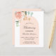 A white background decorated with eucalyptus greenery, a rose gold and blush pink rose, and golden leaves and a rose gold arch frame. Personalise and the childs name and ceremony details. Hand lettered style script.