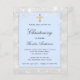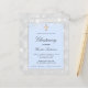 Faux silver metallic and light blue coloured background decorated with faux silver glitter dust. Personalise and add a name and the details. Black coloured letters.