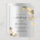 A modern, elegant baptism, christening invitation, gender neutral. Faux silver metallic looking background decorated with golden eucalyptus, sprigs. Personalise and add a name and details. Black coloured letters.
