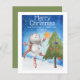 BUDGET Christmas Bunny Rabbit Decorating Tree In Snow personalised flat greeting cards from Ricaso