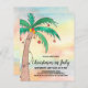 They feature a hand drawn palm tree decorated with lights and baubles on a watercolor background.
