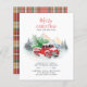 What better way to let your friends and family know about your new holiday address and wishing them a very Merry Christmas with this classic red truck in the snow with a Christmas tree on the back budget announcement card to set the mood for what's to come.