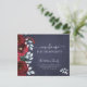 Winter chic modern floral Christmas holiday budget affordable moving announcement featuring burgundy flowers with light grey foliage border and a trendy elegant handwriting typography script over a dark midnight navy blue chalkboard background.+++++++++++++ Easy to personalise with your text, new address and signature! ++++++++++ PLEASE READ THIS BEFORE PURCHASING! This is a budget affordable wedding card printed on a paper sheet (each sheet has one card). ++++ For the best rapport price-quality, our advice is to choose the Semi-Gloss paper type (it is thick enough to be used for stationery) ++++ If you need envelopes, choose the ENVELOPE OPTION. +++ Double-check all the information and spelling of your text because you will receive exactly what you see - no one else will check anything before printing. ++++ This card is designed for size 4.5" x 5.6". In the case you choose another size of the card and text goes outside page, everything needs to be fixed before adding the product to cart. Please ask Live Design Service for help.