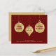 Three hand-drawn metallic gold Christmas ornaments let your family and friends know that you've moved during the holidays. A monogram initial with your name overlaid puts your personal or family stamp on the announcement. Against a rich dark red background, the front of our budget holiday moving card also displays a starry border and your name and address in the same colour as the monogram initial. The text "new home" and "for the holidays" is part of the graphic design. All other example text on front and back of the card can be easily revised on the personalisation template.