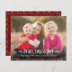“Peace, love & joy.” A playful visual of white whimsical, handwritten typography and faux gold foil confetti dots against your personalised photo, helps you usher in Christmas and New Year. Feel the warmth and joy of the holiday season whenever you send this stylish and modern personalised, custom photo budget holiday card. Using the easy-to-use templates, replace the photo with one of your own and type in your greeting, year and names. On the back, a faux champagne gold snowflake and confetti dots overlay a brick red background. Matching and coordinating cards, envelopes, giftwrap, pillows and other products are also available in my “Christmas Peace, Love & Joy” store collection. Makes a great addition to all your correspondence!