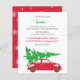 Budget Cute Christmas Tree Car We've Moved Holiday Moving announcement Postcard with Red Vintage Car and Decorated Christmas tree on top with snowflakes flurries back