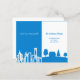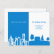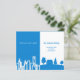 An elegant and minimalist moving annoucement card from a city life to a rural country life. Blue and white with a city skyline and a country home. Personalise and add your new address and message to your family and friends.