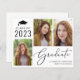 Simple budget-friendly Class of 2023 graduation announcement featuring a 3 picture photo collage and "Graduate" in an elegant script. Add the grad's name, class year and school or university in modern typography.