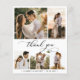 Budget, Modern, Elegant Script 5 Photo Collage Affordable Wedding Thank You Flyer in Black and White. Stylish, minimalist wedding card template featuring five (5) grid photo collage on the front and one (1) photo on the reverse side. "Thank you" text in a cursive hand lettered typography or calligraphy font script with swash tail. Personalise with your name and thank you message. If You need help or matching item, please contact to designer!