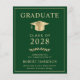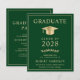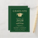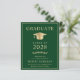 Elegant and budget-friendly green college graduation announcement and party invitation with a gold grad cap and modern light gold typography for the graduate's name, class year, college or university, degree and major or honours.