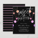 Celebrate the her sweet 16 birthday in style and affordability with this modern girly Sweet Sixteen birthday invitation. Design features the words "sweet sixteen" in a modern handwritten script font with a border of colourful sparkle glitter drops. Bottom of the card showcases the details of the birthday celebration which can be totally customised to your needs. The reverse side feature a pretty striped pink glam glitter pattern.