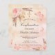 A rose gold, blush pink rustic faux metallic looking background. Decorated with rose gold and pink florals, roses, pampas grass, butterflies and a golden cross. Personalise and add a name and the details.
