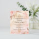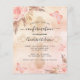 A rose gold, blush pink rustic faux metallic looking background. Decorated with rose gold and pink florals, roses, pampas grass, butterflies. A large golden cross in the bacground as a watermark. Personalise and add a name and the details.