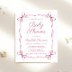 This cute, budget-friendly baby girl shower invitation blends a minimal aesthetic with a touch of vintage charm, featuring a soft pink frame adorned with delicate watercolor ribbons and coquette bows. The words "Baby Shower" and the name of the mother-to-be are showcased in an elegant pink script, while the shower details are presented in clean, simple pink lettering, creating a timeless and stylish design.