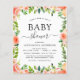 Budget Coral, Peach and white Floral and Eucalyptus Greenery Botanical Spring or Summer Baby Shower Invitations - includes beautiful and elegant script typography with modern botanical flowers and greenery for the special Mother to Be celebration for a Boy, Girl or Gender Neutral party.