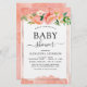 Budget Rose Gold Geometric Coral, Peach and White Floral and Eucalyptus Greenery Botanical Spring or Summer Pastel Baby Shower Invitations - includes beautiful and elegant script typography with modern botanical flowers and greenery for the special Mother to Be celebration for a Boy, Girl or Gender Neutral party.