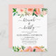 Budget Coral, Peach and white Floral and Eucalyptus Greenery Botanical Spring or Summer Brunch and Bubbly Champagne Bridal Shower Invitations - includes beautiful and elegant script typography with modern botanical flowers and greenery for the special Bride to Be day celebration for an upcoming Wedding.