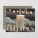 Small elegant 4.5" x 5.6" Christmas holiday greeting cards feature a beautiful white candle, ornaments, a blanket and Season's Greetings in chic lettering on the front and your personal greeting on the back. These affordable greeting cards are printed on 110 lb paper available in 3 sizes. **WHITE ENVELOPES ARE OPTIONAL ON ORDER PAGE. Be sure to double-check your order before adding it to your cart as what you see on the screen is what will be printed. The Live Design Service can help you with your design layout if needed.