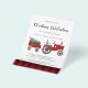 Budget Country Rustic Christmas Party Flyer - Budget Christmas Party Flyer features a rustic red country tractor, pulling a trailer filled with a freshly cut Christmas tree and wrapped Christmas gift. Invitation features script handwritten style typography and Red Buffalo Plaid. Flyer is part of a collection.
