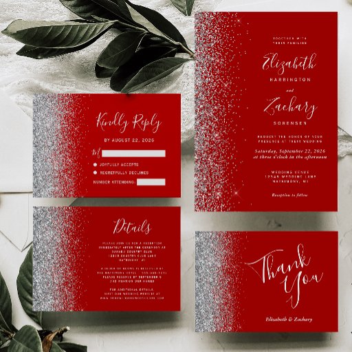 Crimson Red Silver Glitter Wedding SuiteDesigned by Akhates Designs