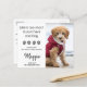Add your pup's favourite photo and personalise with pups name and family name! Type your personal message to family and friends on the back or delete to handwrite.