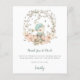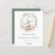 A budget price SMALLER 4.5” x 5.6” alternative. Available in a SEMI-GLOSS 110 lb CARD STOCK which is the default option (thicker for invitations), OR a SATIN FINISH 80 lb THINNER PAPER STOCK (ideal for enclosures). Envelopes are an optional extra and are slightly larger than the card size. Say thank you after your baby shower with woodland cuteness with this adorable boy bear within a vintage foliage and floral frame. Easily personalise with your own words of thanks and name. A coordinating sage green background is on the back. You can change the fonts and text and background colours if you wish via the Click to Customise Further option.
