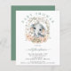 Budget Cute Elephant Sage Baby Shower Small Invitation. A budget price SMALLER 4.5” x 5.6” alternative. Available in a SEMI-GLOSS 110 lb CARD STOCK which is the default option (thicker for invitations), OR a SATIN FINISH 80 lb THINNER PAPER STOCK (ideal for enclosures). Envelopes are an optional extra and are slightly larger than the card size. Jungle cuteness with this adorable elephant within a vintage foliage frame. Easily personalise the text. A coordinating sage background is on the back. You change the fonts and text and background colours if you wish via the Click to Customise Further option.