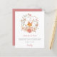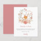 A budget price SMALLER 4.5” x 5.6” alternative. Available in a SEMI-GLOSS 110 lb CARD STOCK which is the default option (thicker for invitations), OR a SATIN FINISH 80 lb THINNER PAPER STOCK (ideal for enclosures). Envelopes are an optional extra and are slightly larger than the card size. Say thank you after your baby shower with sweet woodland charm with this adorable girl fox within a vintage floral and greenery frame. Easily personalise with your own words of thanks and name. A coordinating coral background is on the back. You can change the fonts and text and background colours if you wish via the Click to Customise Further option.