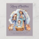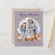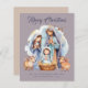 Budget Cute Nativity Merry Christmas Card. A budget price smaller 4.5" x 5.6" semi-gloss card, similar in thickness to a postcard. A Cute Nativity scene in gentle pastel shades of creams, caramel and hazy purple. Easily with your greetings and names on both sides.