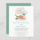 Cute Sleeping Fox Teal Baby Shower Invite. A budget price SMALLER 4.5” x 5.6” alternative. Available in a SEMI-GLOSS 110 lb CARD STOCK which is the default option (thicker for invitations), OR a SATIN FINISH 80 lb THINNER PAPER STOCK (ideal for enclosures). Envelopes are an optional extra and are slightly larger than the card size. . For times when you can't get together in person, a Baby Shower by Mail is a lovely idea to send the parents to be your gifts and best wishes. This design has a cute sleeping baby fox with a teal bow and softly pastel coloured balloons. Easily personalise the typography beneath.