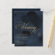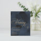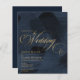 Budget dark midnight blue and gold painterly wedding invitation.